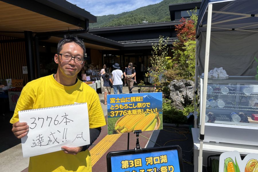 7月26日・27日に開催された「第三回 河口湖とうもろこし祭り」にてついに目標の 「富士恵味 3776本」販売を達成することができました!!